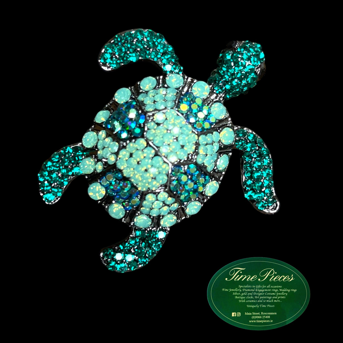 Beautiful jewelled turtle brooch in blues and greens. This little beauty can also be used as a pendant.