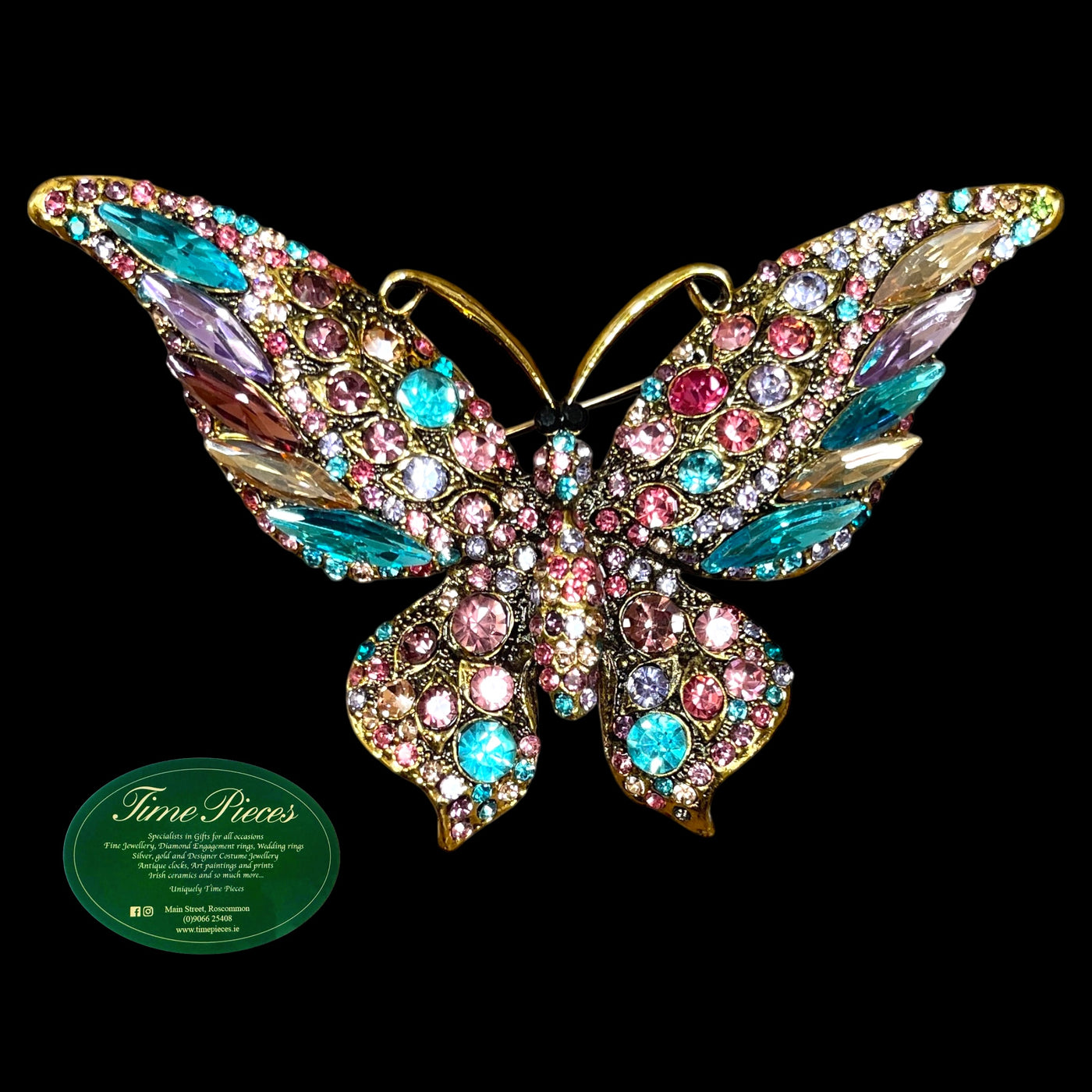 Beautiful bright butterfly brooch with multi coloured jewels with a wingspan of approximately 9x7cm for a lovely lift!