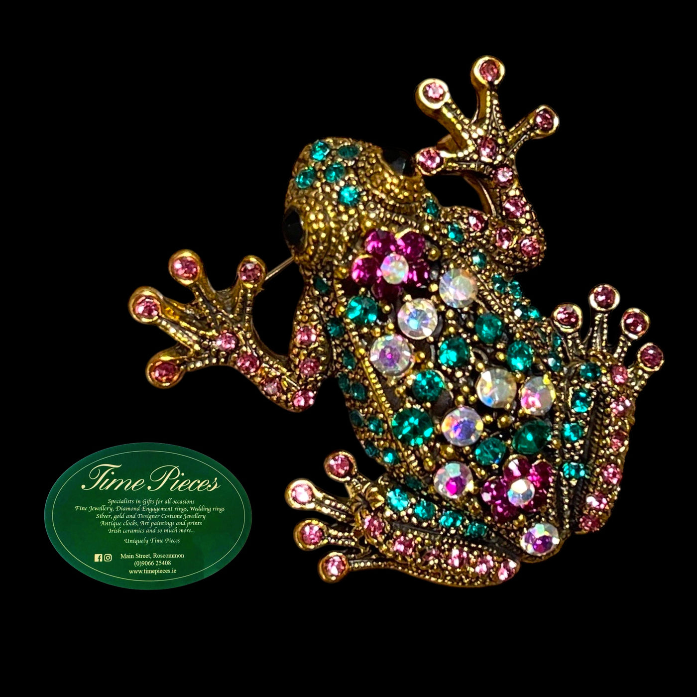 Gorgeous colourful jewelled frog brooch for all frog lovers out there. He loves to be worn in hats too!